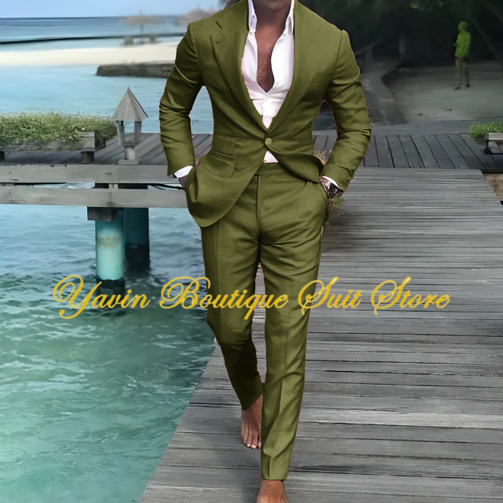 Olive Green Linen Wedding Suits: Timeless and Earthy