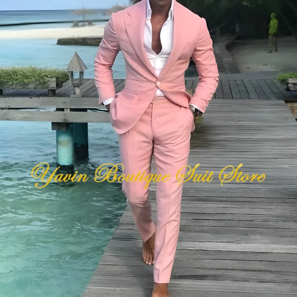 • Pastel linen suits – Light blue, soft pink, or lavender options that are perfect for spring weddings and light-themed palettes
