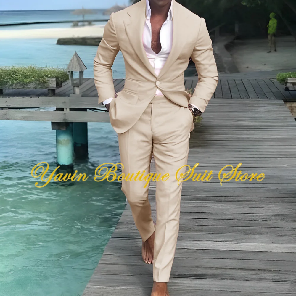 • Beige linen suits – Soft, neutral, and universally flattering, ideal for outdoor and daytime weddings